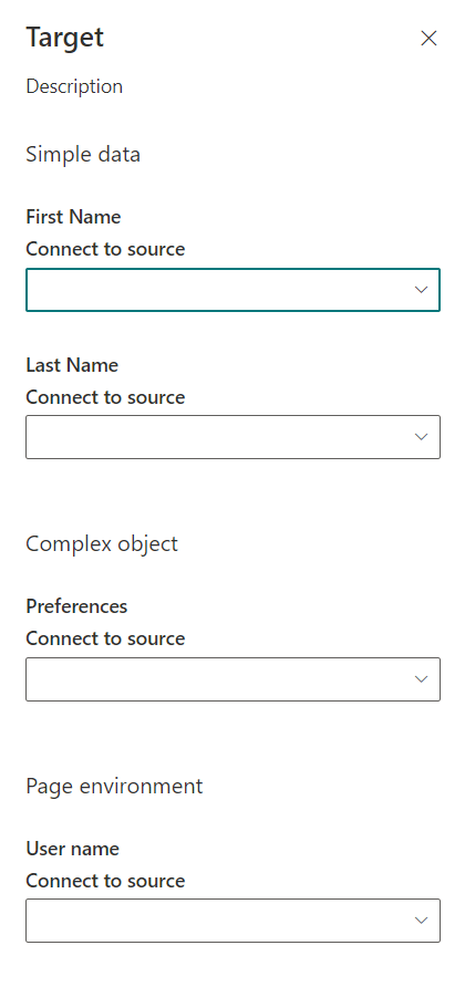 Aside of the custom source there is also the possibility to select “Page environment” which allows the selection of different page context properties, those properties are: