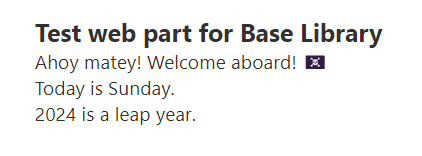 base-library: this contains the actual implementation of the library component.test-project: this contains the sample web part to demonstrate how to use the library component from another SPFx project.