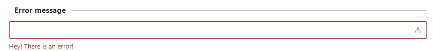 When needed, it’s possible to define an error message to be displayed. Setting this value to a value different than an empty one renders the control with a red border and also adding the error message in red at the bottom of the control itself. To add the error message simply set the property errorMessage with the error that you want to display to the user: