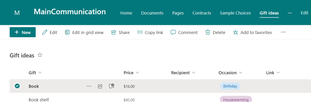 Starting with the resulting UI there are a couple of commands in this sample. The “List favorites” one will be shown always: