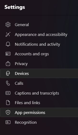 To give the permission to access the location, in Teams, open the settings and select App permissions: