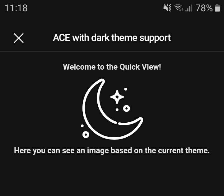 Supporting the dark theme is a nice addition for every modern mobile application, the ACEs are already theme aware but what I described in this article is quite an easy step to increase furthermore the personalization of your ACE, I showed you how to use an image but you can do the same also for icons!