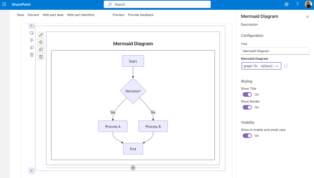 Mermaid is quite useful, no doubt about that. It might also be useful to display diagrams in a SharePoint Online site. So, why not displaying a mermaid diagram in an SPFx web part?