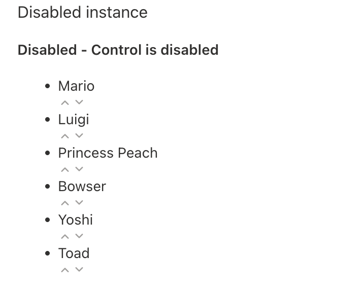 Proceeding with other control instances, it’s possible to disable the control. As a result all the arrows and the drag and drop capabilities are disabled.