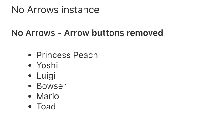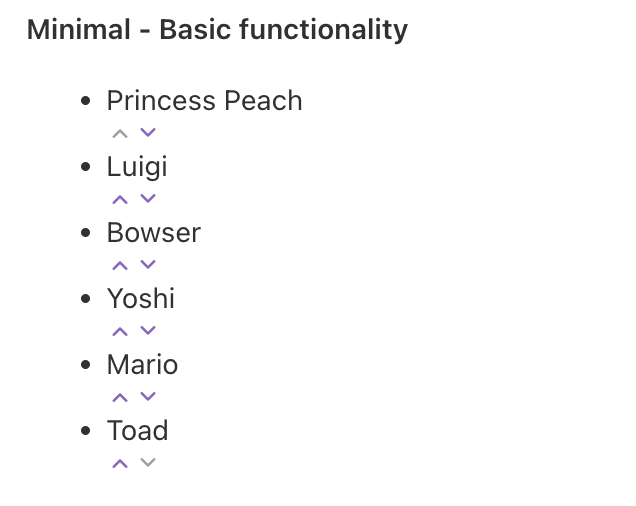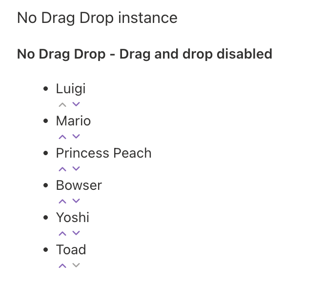 In opposition with the previous instance, it’s also possible to disable the drag and drop capability, leaving only the ability to use the arrows to move the items around: